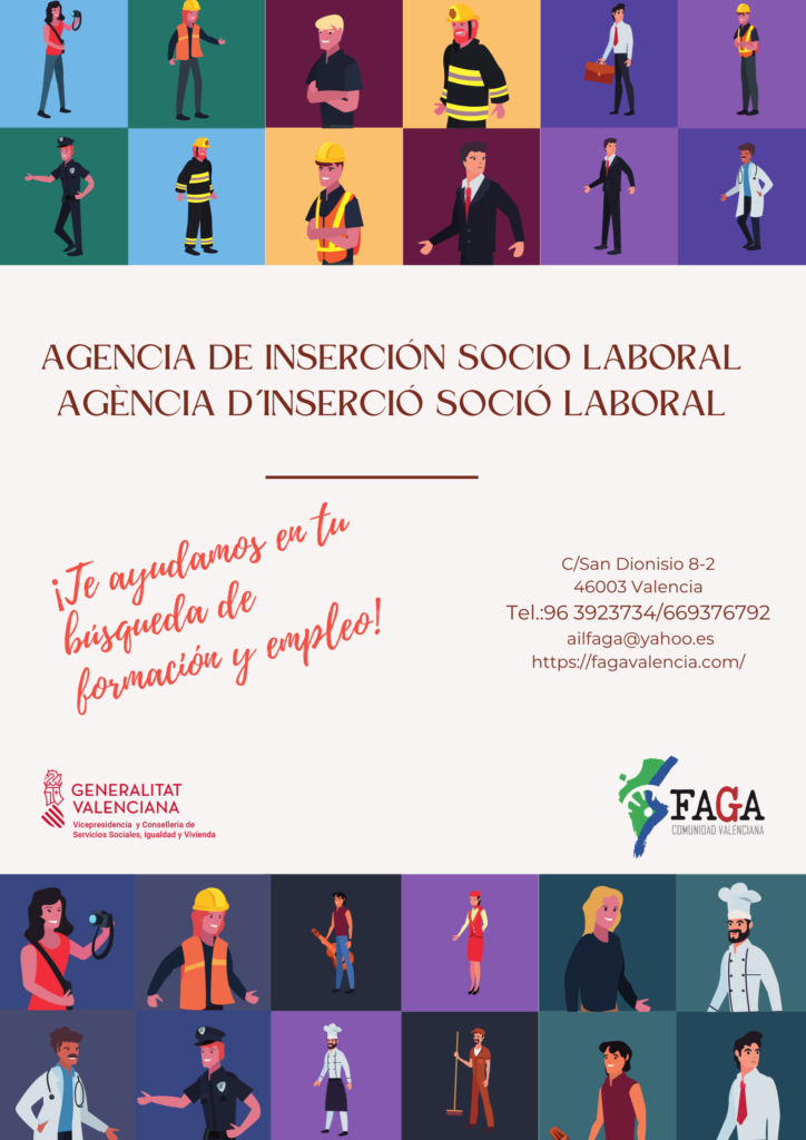 La Agencia de Inserción Laboral es un servicio especializado en empleo, desarrollado por la Federación Autonómica de Asociaciones Gitanas de la Comunidad Valenciana, que pretende servir de referente en materias de inserción laboral y ocupación para población gitana.