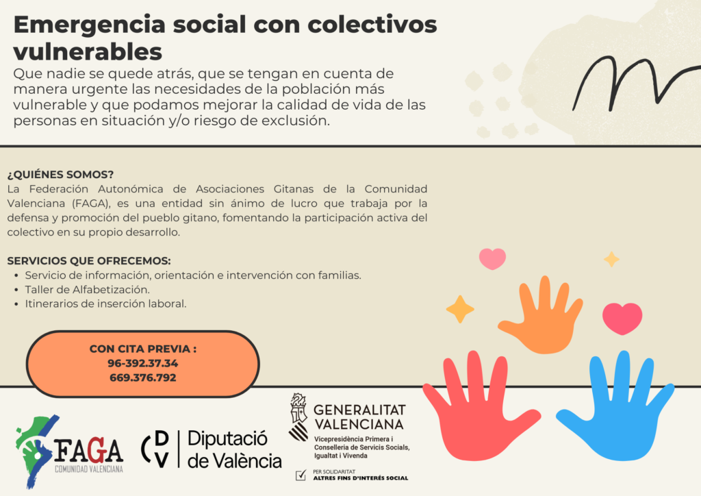 Este proyecto está subvencionado a través de la Diputación de Valencia y la Conselleria de Servicios Sociales, Igualdad y Vivienda.
